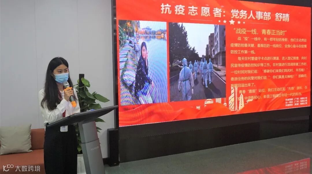会上,抗疫志愿者代表分享了他们在抗疫一线的经历和感悟。他们身穿厚重防护服,顶着高温在疫区内进行流调工作,不分昼夜在村口、路口、高速出口检查进出车辆的通行证、健康码、出行码、量体温、消毒等工作。尽管工作细小而重复,志愿者们始终保持满腔热忱,耐心细致地完成。在支援的这一周时间里,他们得到了疫区村民的理解和配合,同时收到来自公司和社会各界的关心和关爱。