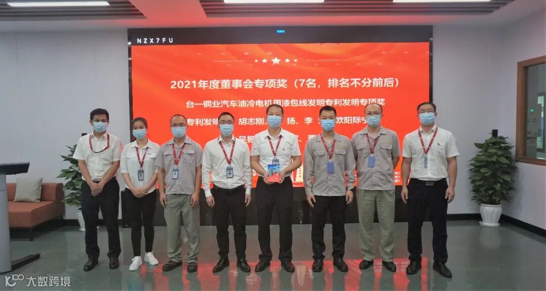 公司领导向荣获集团2021年先进集体和个人的员工进行颁奖和表彰。由胡志刚团队申请的“台一铜业汽车油冷电机用漆包线发明专利”荣获集团2021年“董事会专项奖”,来自公司11个部门共计29名员工荣获集团2021年优秀个人。