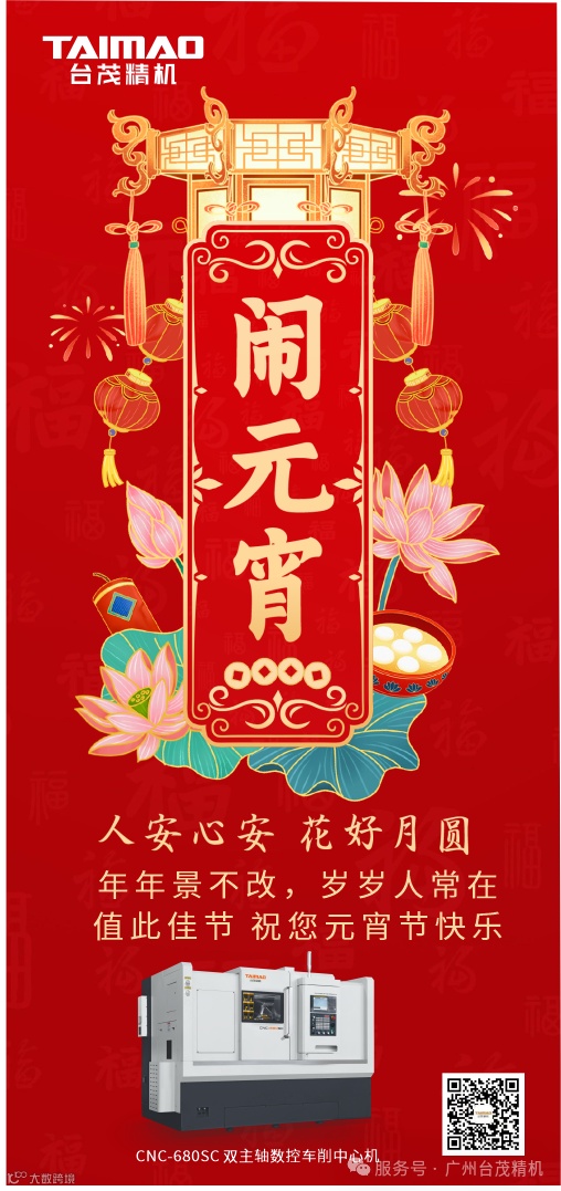 新春的爆竹声犹在耳畔,元宵的灯火已悄然点亮。正月十五月圆时,广州台茂精密机械有限公司谨以最诚挚的祝福,愿您与家人灯火可亲,月圆人安,阖家共品团圆甜!