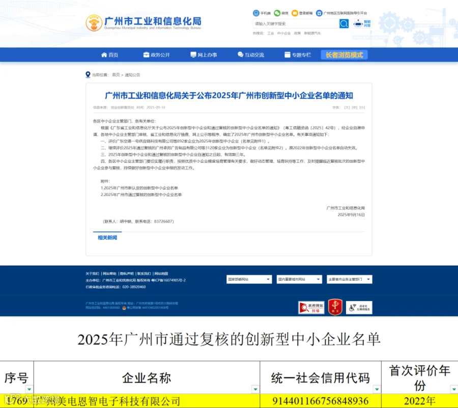相继公布《广东省2025年第一批入库科技型中小企业名单》及《2025年广州市通过复核的创新型中小企业名单》,美电恩智凭借在音视频领域的持续研发投入与高效的成果转化能力,成功入选“