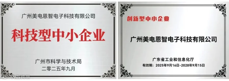 喜报!美电恩智荣获2025年度“创新型中小企业”与“科技型中小企业”双项认证!