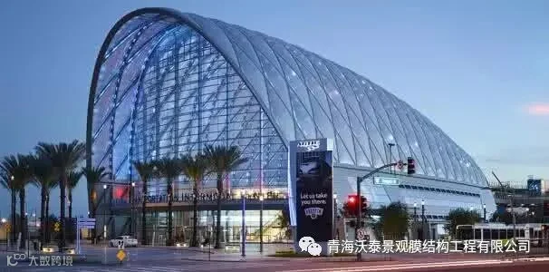 膜结构是建筑结构中最新发展起来的一种形式,它以性能优良的织物为材料,或是向膜内充气,由空气压力支撑膜,或是利用柔性钢索或钢性支撑结构将面绷紧,从而形成具有一定钢度、能够覆盖大跨度空间的结构体系。这种高强度柔性薄膜材料,能够实现多样化的建筑造型,上世纪60年代起,它成为各类标志性建筑的流行元素。