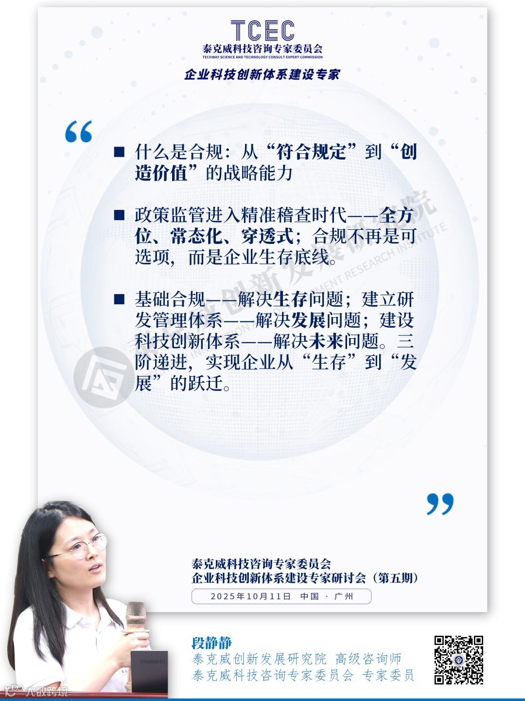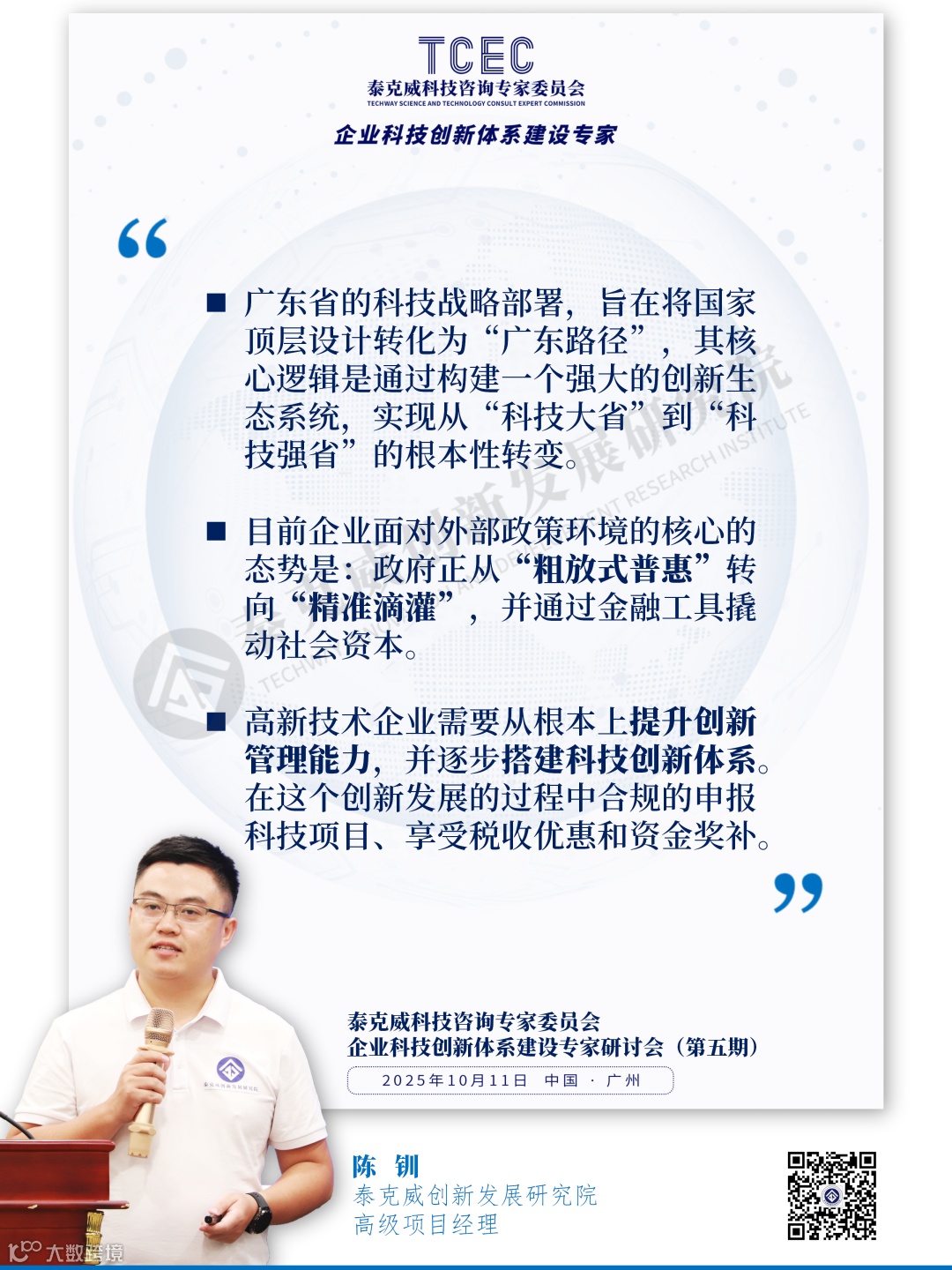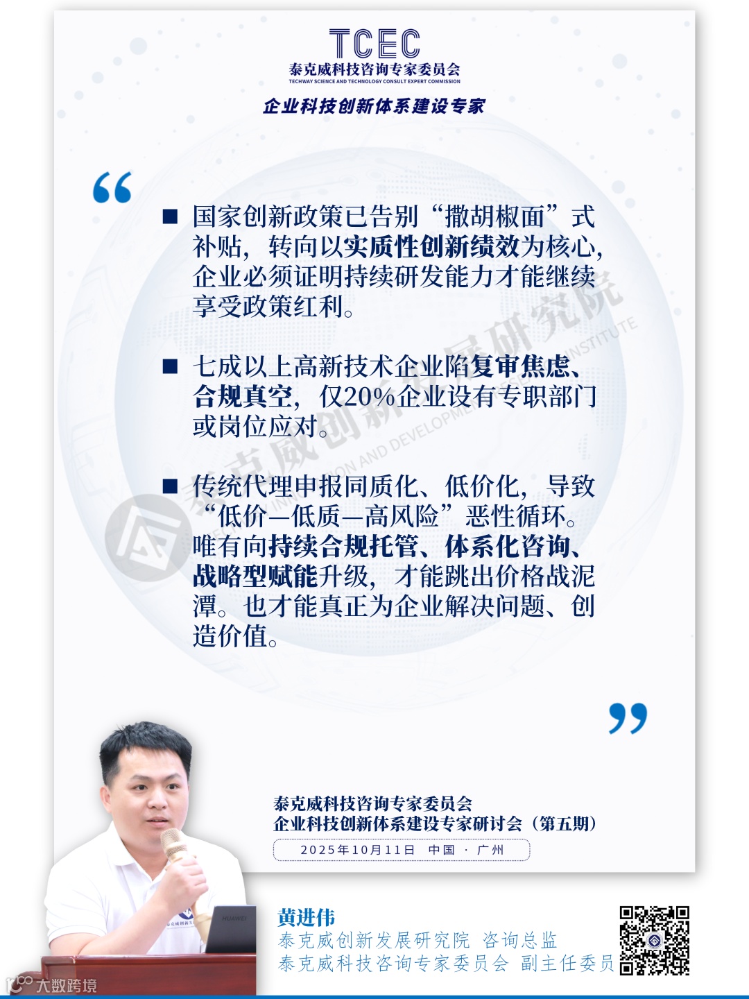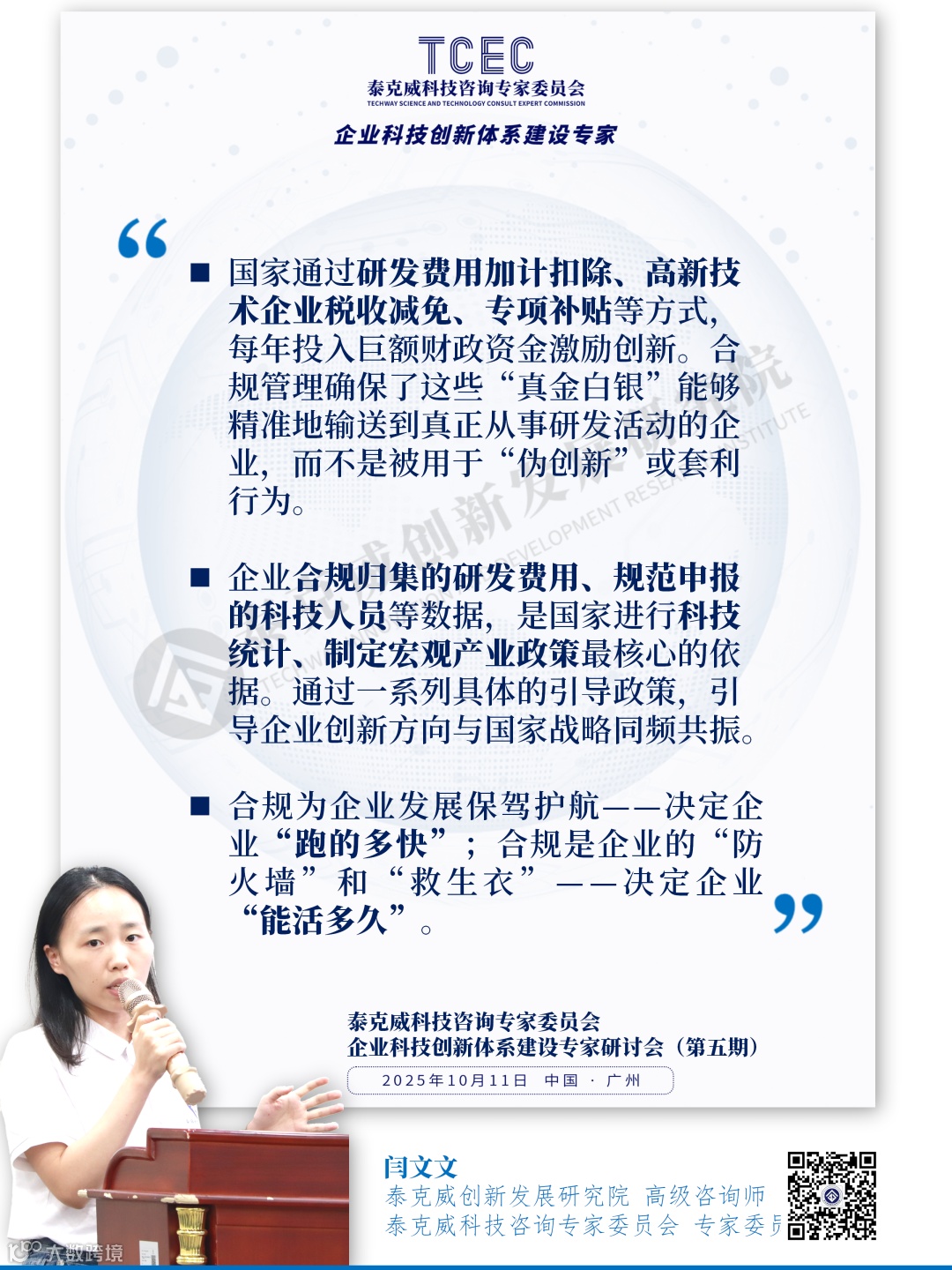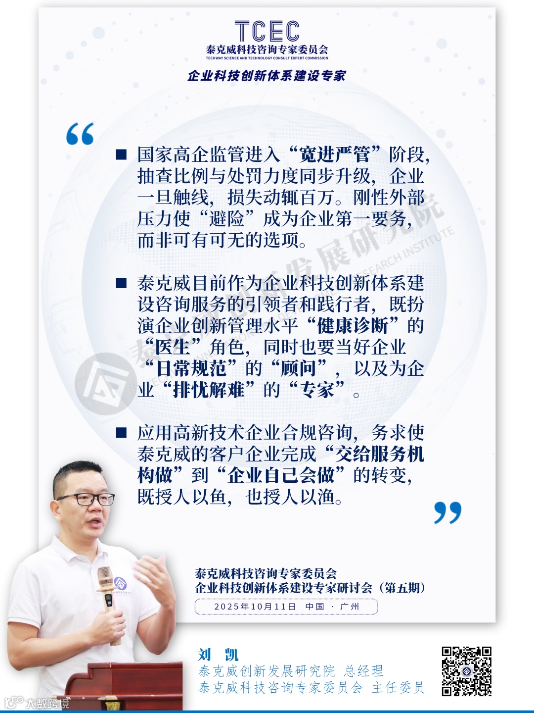 2025年10月11日,泰克威创新发展研究院科技咨询专家委员会(TCEC)举办了第五期《企业科技创新体系建设专家研讨会》。