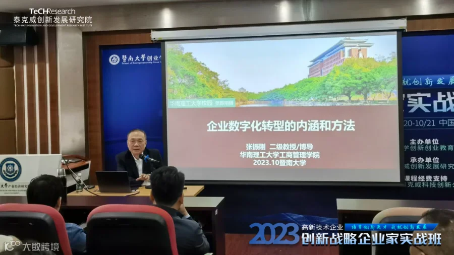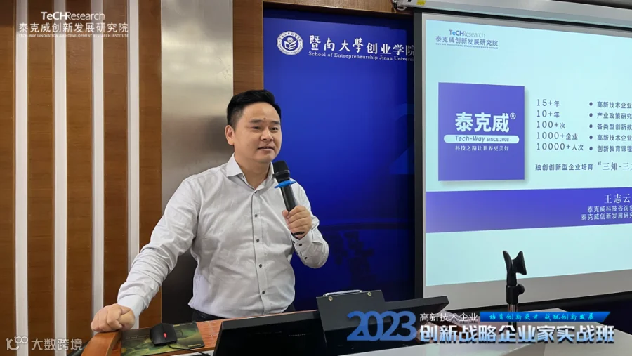 2023年10月20日-21日,由暨南大学创新创业教育中心主办、泰克威创新发展研究院承办、暨南大学泰克威科技创新基金经费支持的《高新技术企业创新战略企业家实战班》第一期·暨南大学班在暨南大学管理学院成功开课!