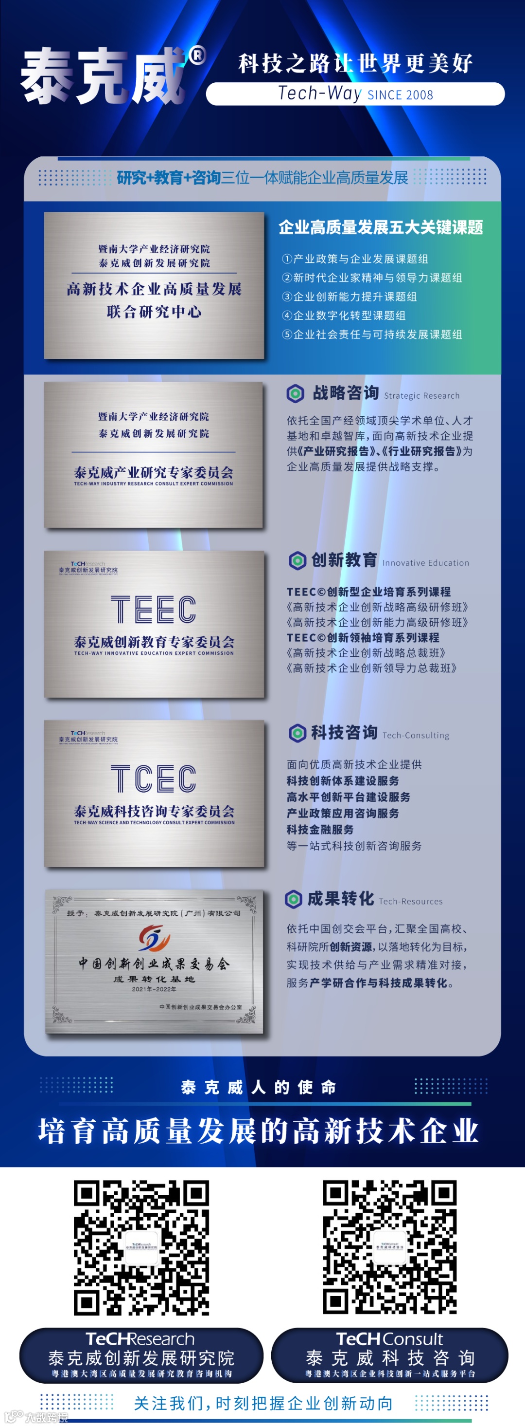 旨在为企业家和企业主要经营决策者,构建系统化的企业战略思维与方法,从企业科技创新致胜之道的战略定位,到企业创新发展两大支撑:产业研究与数字创新,锚定企业转型的决心,坚定企业家创新经营的信心,并打通创新型企业战略部署的有效路径。