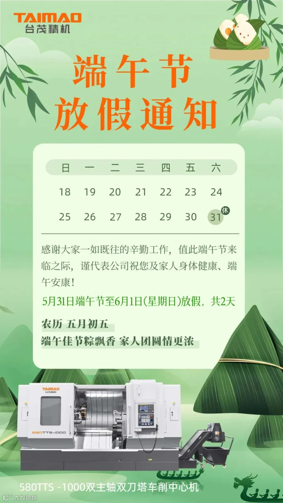 粽叶青,匠心浓!端午佳节,台茂精机以精湛工艺为“馅”,用严苛标准作“叶”,包裹每一份品质承诺,用科技力量传承匠人精神。坚守品质,创新不止,祝各位客户端午安康,事业蒸蒸日上!