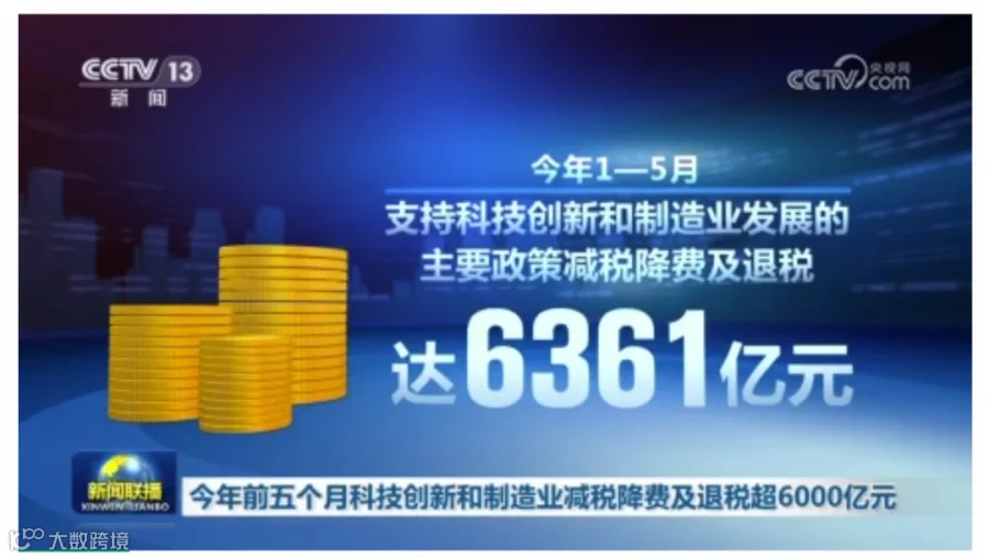 1-5月支持科技创新和制造业发展的主要政策减税降费及退税达6361亿元