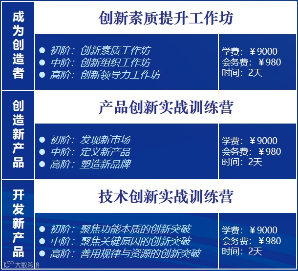 泰克威教育理论体系之二,是面向企业创新型人才开设《高新技术企业创新能力提升高级研修班》,借助课程培训让理论学习、项目推进与人才培养三者相辅相成、相互促进、彰显成效,帮助研发人员走出个人的专业领域,运用人类的知识、结合跨领域发明家的智慧,进而快速得到令客户及经营者满意的创新思路或解决方案。