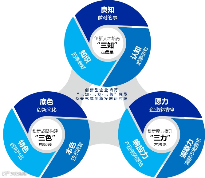 泰克威创立16年来,深耕科技创新服务领域,培育超过1000家具有科技创新核心竞争力的高新技术企业。从多年的产业研究与服务企业的创新实践经验出发,独创了“三知-三力-三色”创新型企业培育理论模型,强调企业创新发展首要之务是育对人,从人入手,选拔和培育具备创新精神和能力的人才,打碎僵化模式,为企业不断注入新思想新活力,釜底抽薪打好坚实基础。在具备人才的基础上,企业提升人才创新能力去洞察市场需求,精准把握创新方向,落地具有市场竞争力的创新产品,通过能力提升干成事,继而制定符合自身特色的创新战略,以实现差异化竞争和可持续发展,终成就事业。