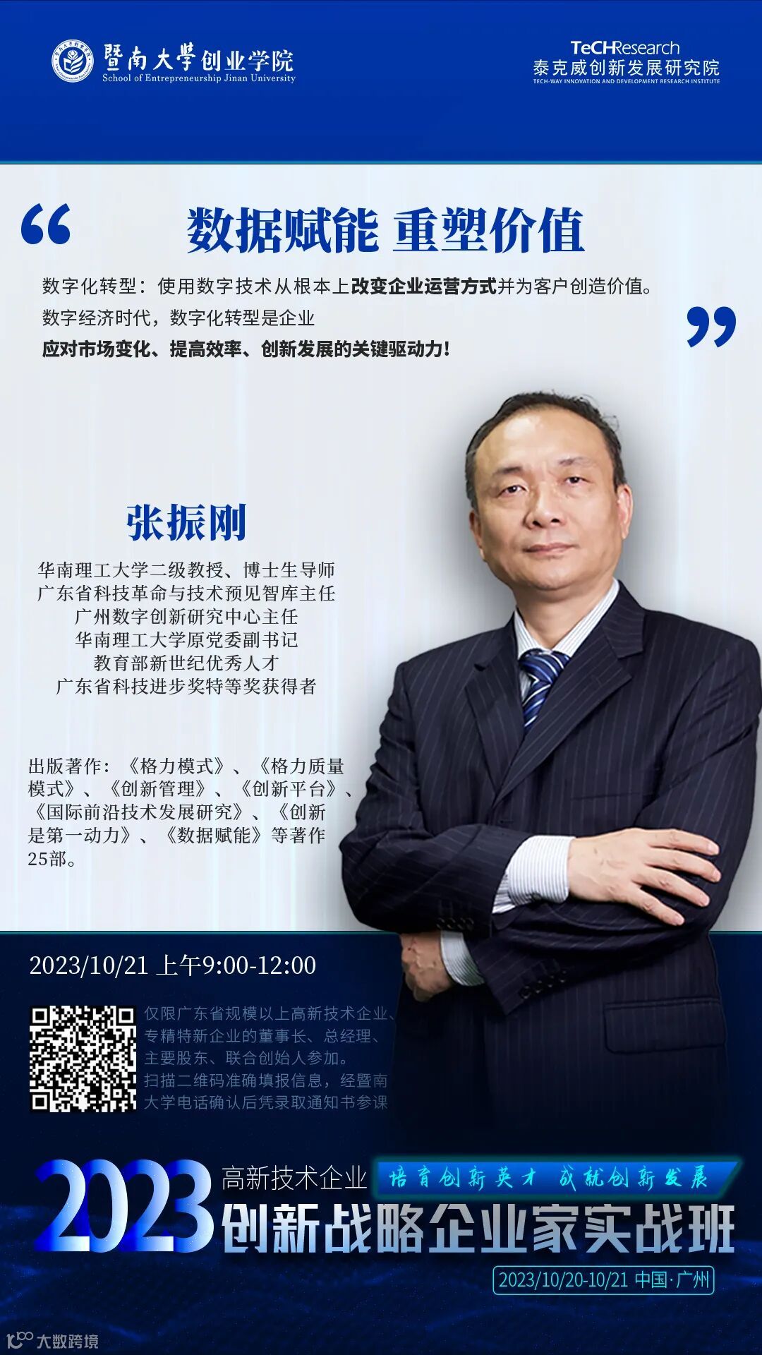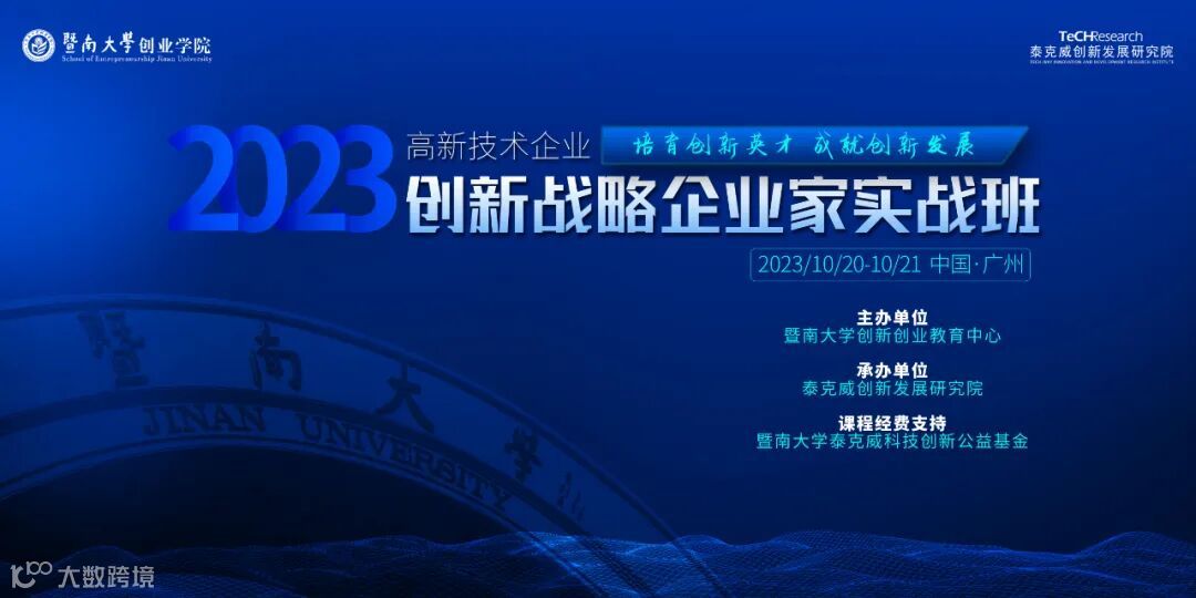 为深入贯彻落实党的二十大精神,进一步发挥科技创新的重要作用,培育新一代具有创新精神的企业家,助力企业家做好创新发展的探索者、组织者、引领者,由暨南大学创新创业教育中心主办,泰克威创新发展研究院承办,暨南大学泰克威科技创新公益基金经费支持的《高新技术企业创新战略企业家实战班》将于10月20日-21日在暨南大学正式开课!