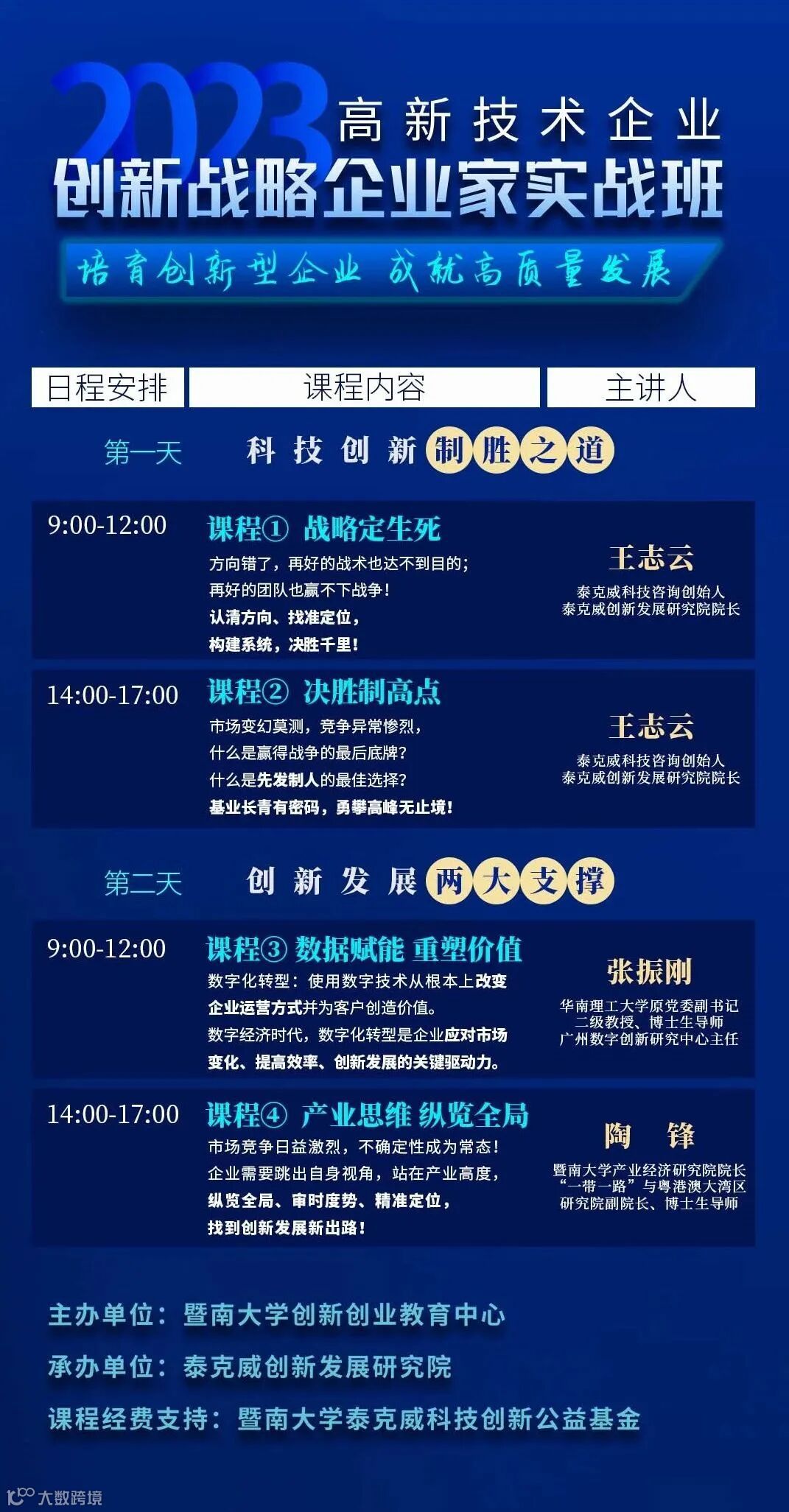 高新技术企业创新战略企业家实战班 2024年开班计划 |
