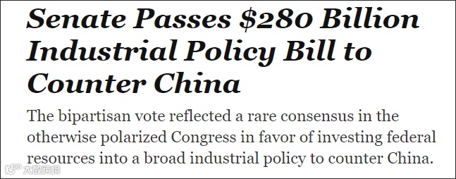 该法案涉及资金约2800亿美元,第一部分包括为美国芯片企业提供520亿美元资金补贴,鼓励其在美国建厂,同时还将为芯片厂提供约240亿美元的投资税收抵免。第二部分主要为人工智能、机器人技术、量子计算等前沿科技领域提供科研经费支持。