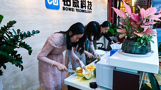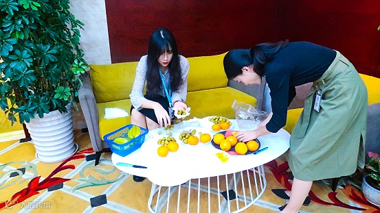 前期工作人员在切水果