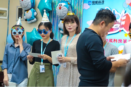 由铂威商学院院长陈非凡代表公司为每一位寿星们送上生日贺卡,表示对他们的祝福和感谢。