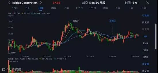 Roblox上市后的股价走势▼