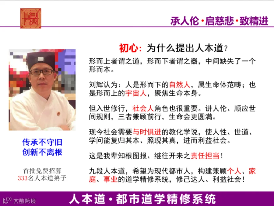 人本道弟子会系统修习经文、内丹、符咒等传统道功,强化个人能量。但尽量走公司化的产业阳线,尽量为传统道学从业者提供增量!