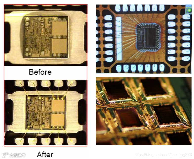 Wire Bonding:即打线(压焊,也称为绑定,键合,丝焊)是指使用金属丝(金线、铝线等),利用热压或超声能源,完成固态电路内部接线的连接,即芯片与电路或引线框架之间的连接。