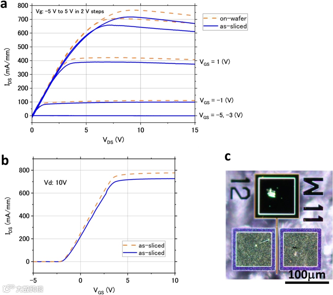 该技术已被证实即使在激光切片后,GaN-on-GaN HEMT仍可正常工作,并且切割后HEMT的静电性能没有显着变化。这意味着即使在设备制造后也可以应用激光切片工艺。同时,它也可以用作半导体工艺,用于制造厚度约为10mm的薄器件,且无需抛光GaN衬底。