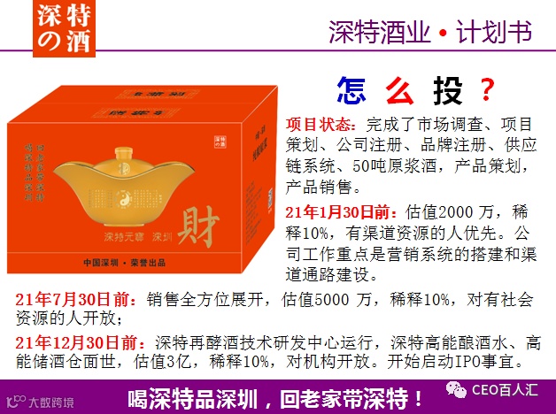 2、上游卡位,用核心技术对其他酒进行升级,全国的酒厂都可以是合作伙伴,不用局限在香型,就像深圳有湖南人、湖北人、山东人、山西人等!