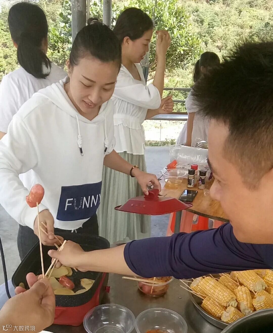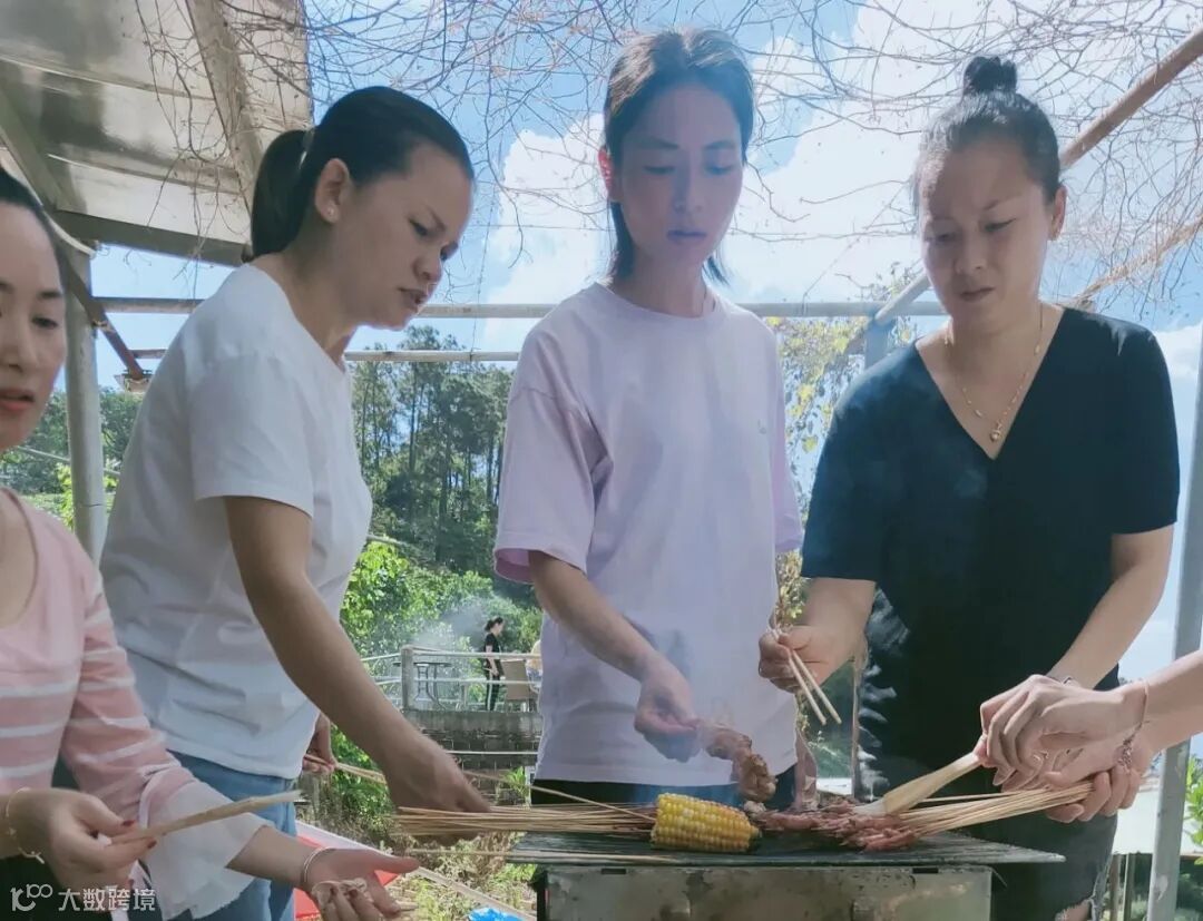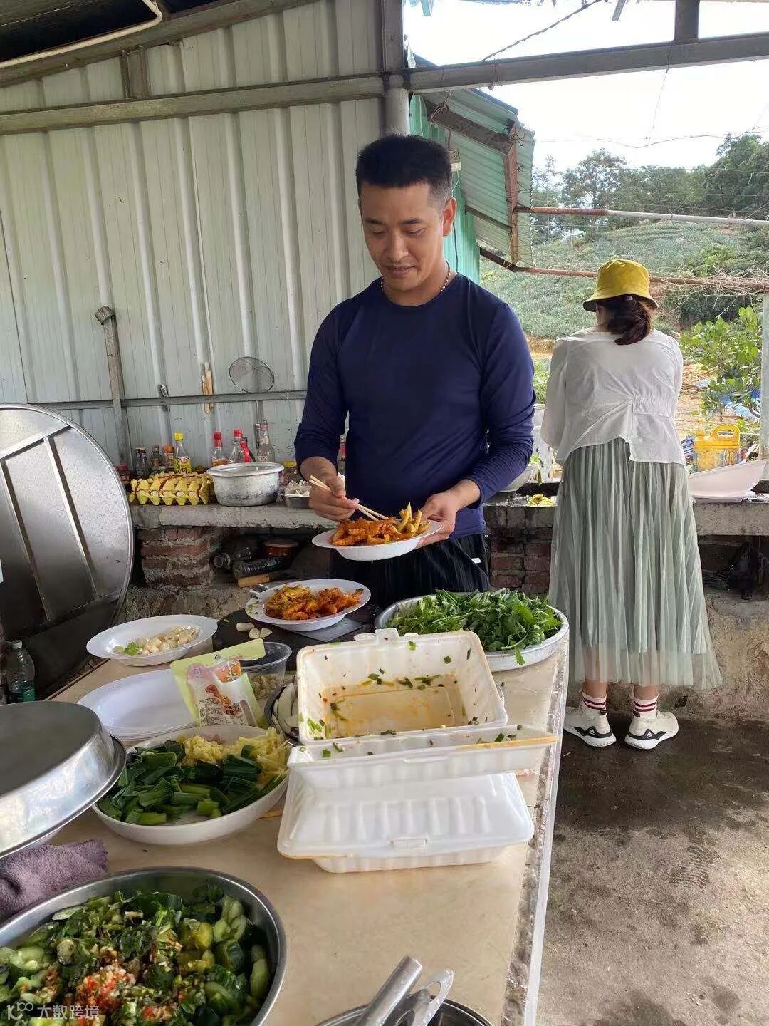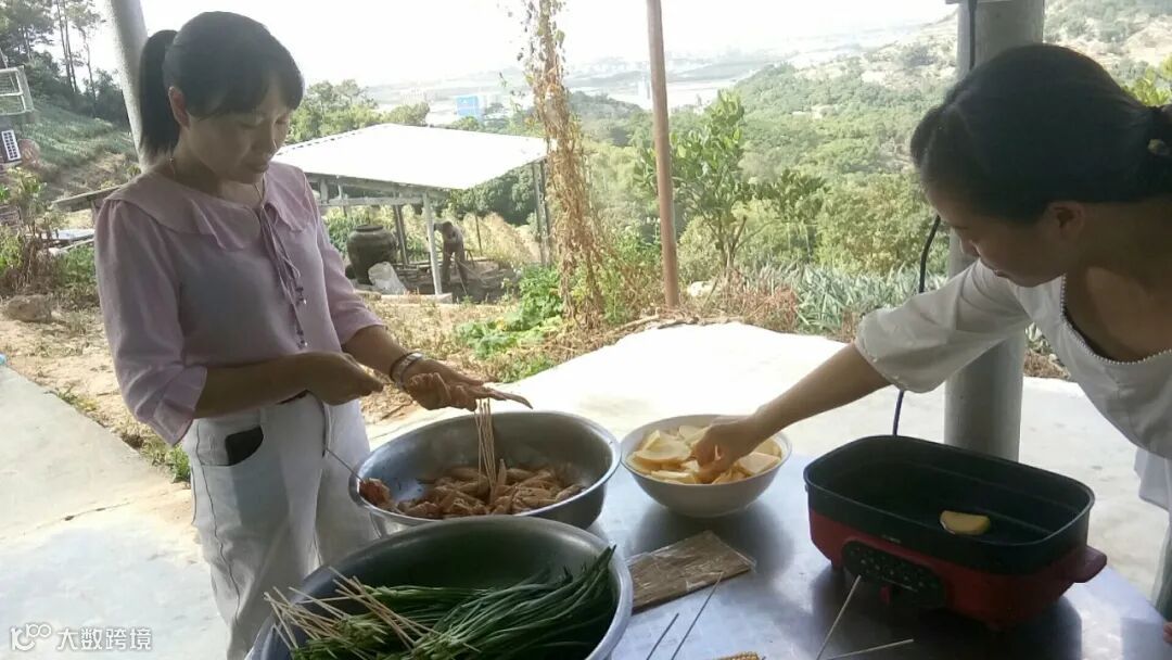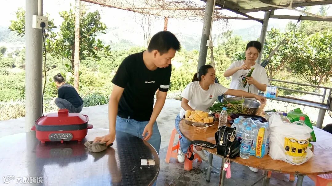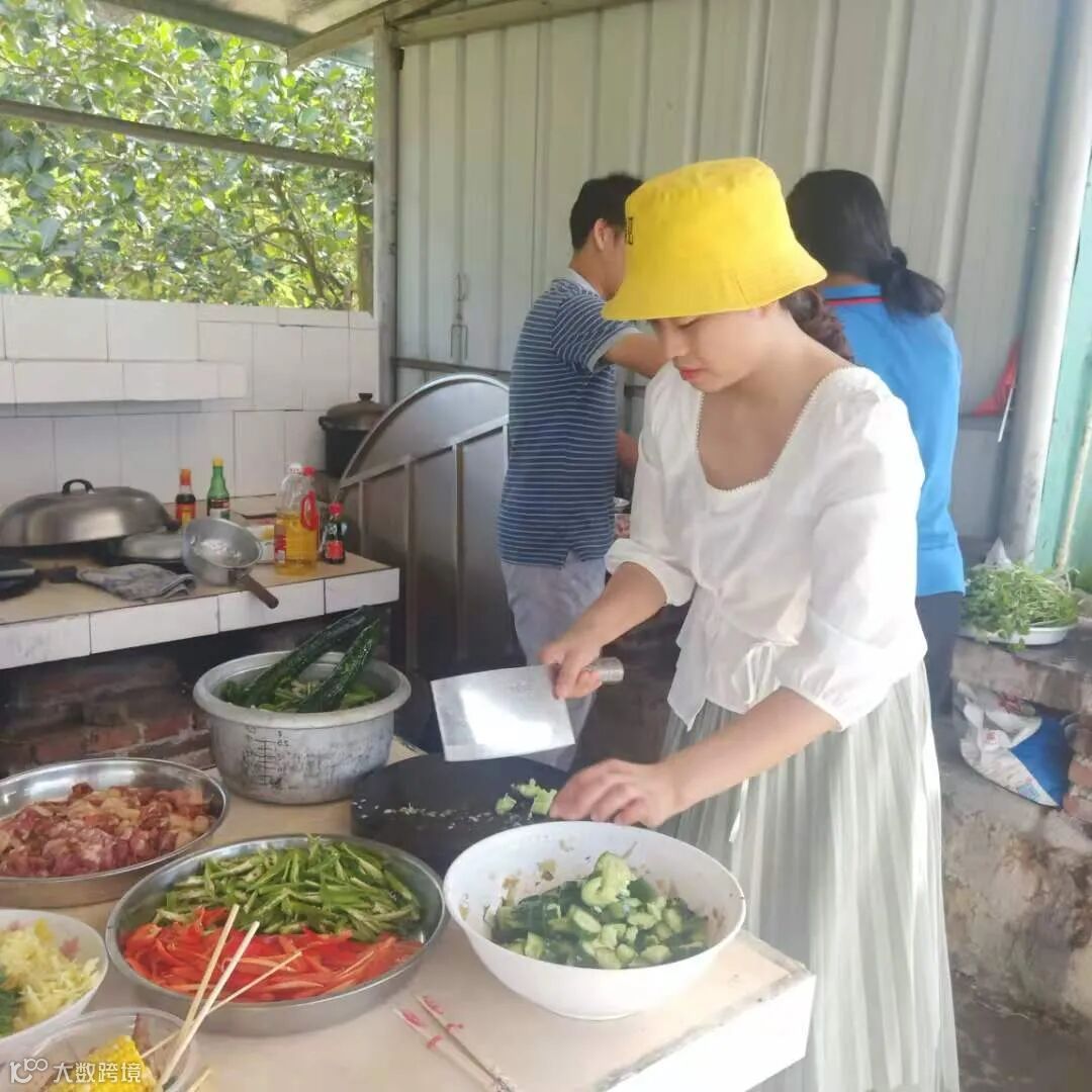 天公作美,微风送爽,怀着快乐愉悦的心情,经过半个小时的登山旅途,伙伴们到达了农场,分工协作,开始烧烤、洗菜做饭...