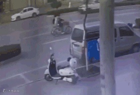 电动车逆行被撞翻