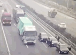 导致后面的大货车来不及刹车