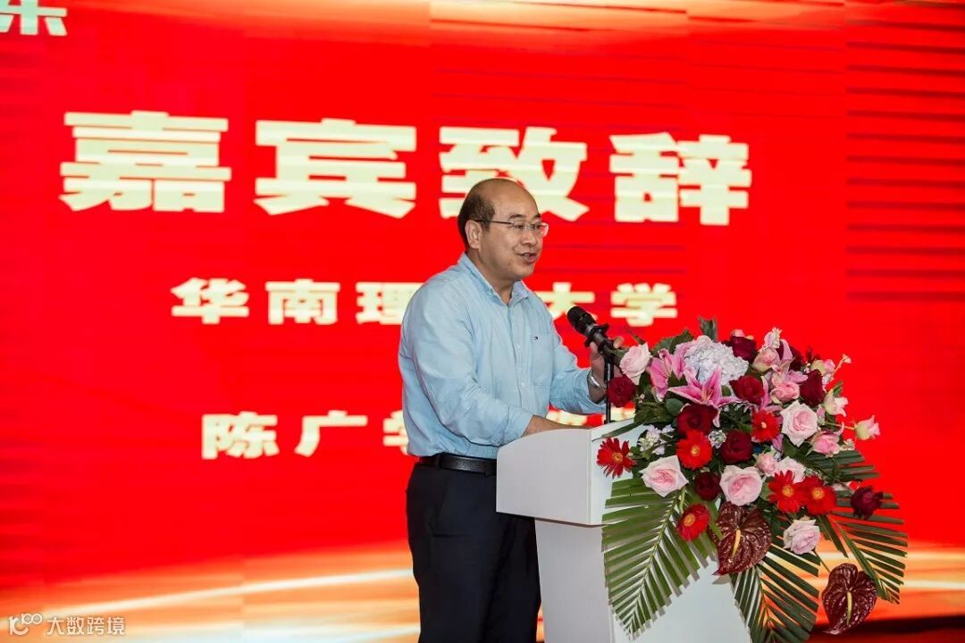 华南理工大学陈广学教授致辞,他表示研发中心的成立对于传统印刷包装企业的技术创新和战略升级极其重要,利用智能包装赋予产品更高的价值和功能是包装行业适应社会发展的必经之路。