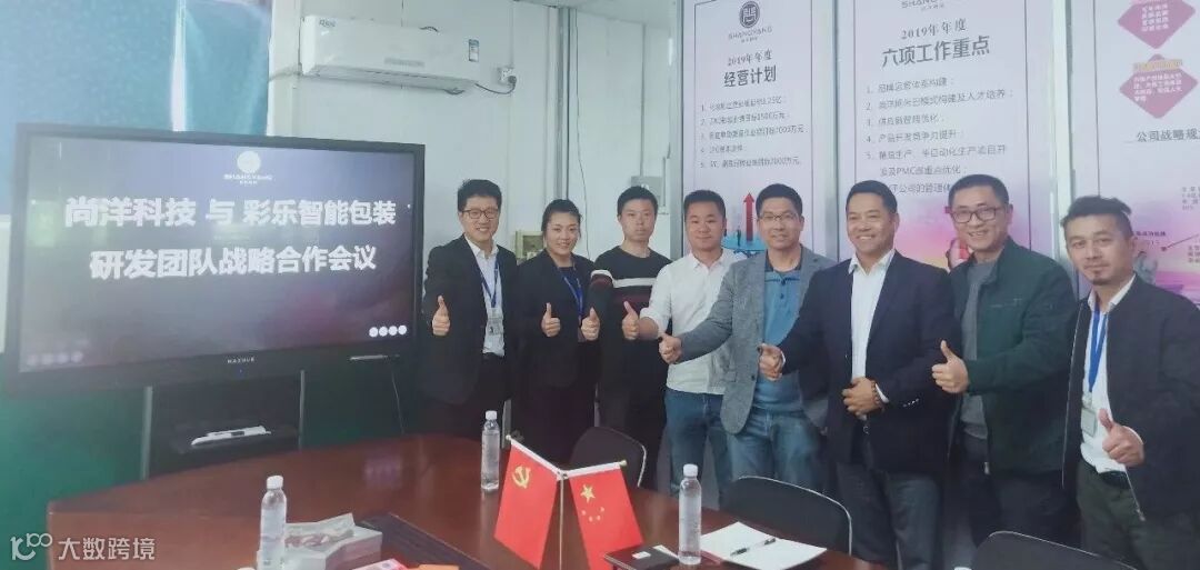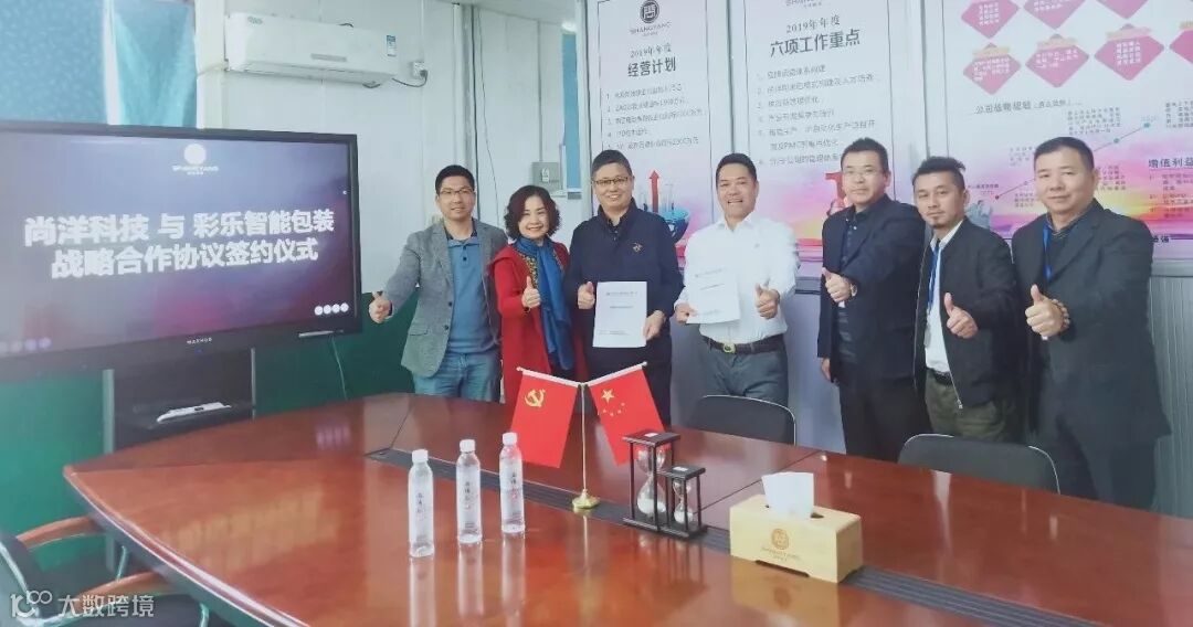 2019年01月24日上午,在中山尚洋科技股份有限公司总部大楼,经过双方的相互介绍,以及充分明了对方的需求与发展规划后,我司董事长刘幸初先生与尚洋科技董事长陈经尚先生,分别代表各自公司,愉快地签署了双方战略合作协议。广东彩乐智能包装科技有限公司将成为尚洋科技股份有限公司的主力包材供应商,彩乐研发中心将立足于为满足尚洋及其客人的需求而提供各种专业的包材方案。