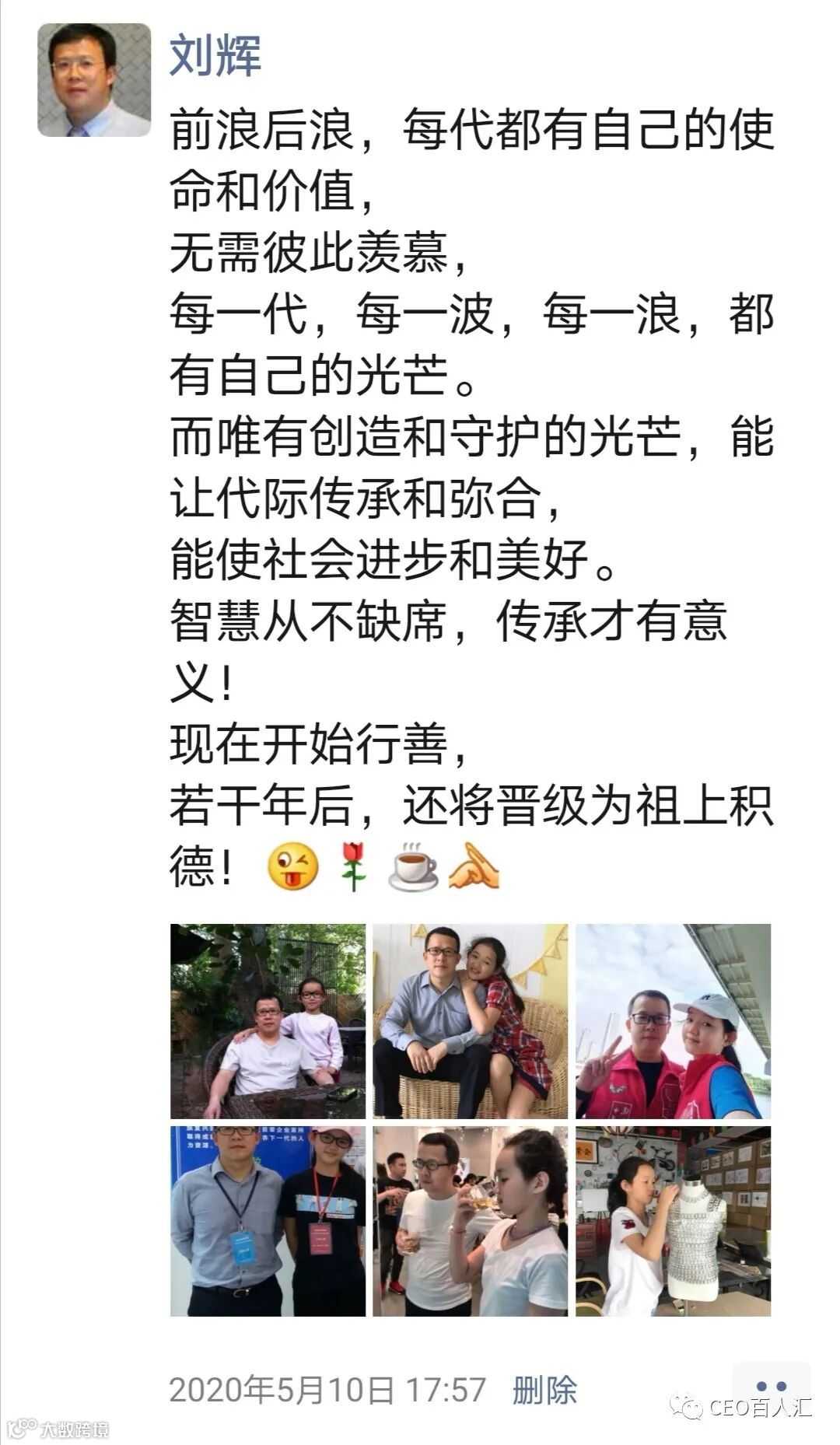 2016年我们参加深圳市创新展,娃戴的是001号董事长的工牌,刘辉戴的是总经理的工牌,我就是希望十多年后,娃在爹的基础上继续前行。