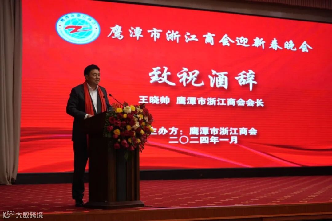 ▲鹰潭市浙江商会会长、渥泰科技董事长王晓帅致祝酒辞