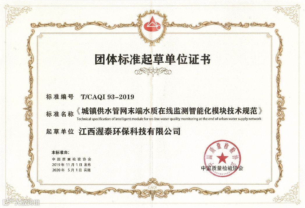 作为《城镇供水网末端水质在线监测智能化模块技术规范》团体标准起草单位,渥泰将继续以此为准绳,不断提高生产工艺、提升产品质量。