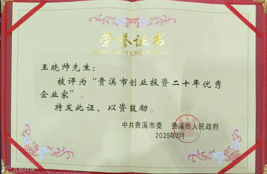 “贵溪市创业投资二十年优秀企业家”称号!