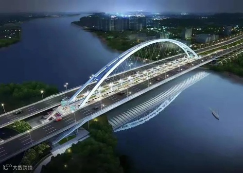 米,主桥为网状吊杆钢混组合梁拱桥结构,整幅设计,桥宽