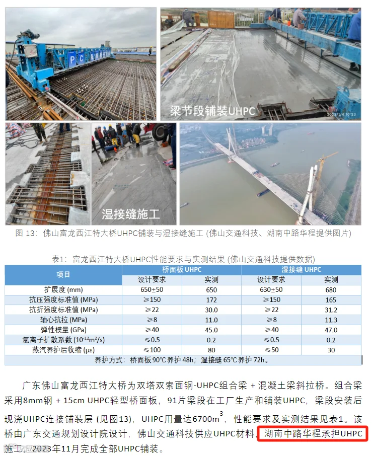 邵教授团队研发的型钢-UHPC组合梁、钢-UHPC组合梁的应用案例,均由中路新材旗下湖南中路华程桥梁科技股份有限公司负责UHPC部分的施工。
