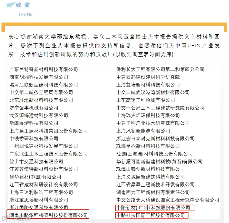 在桥梁应用的UHPC梁桥领域,中路新材及旗下公司更是遥遥领先。