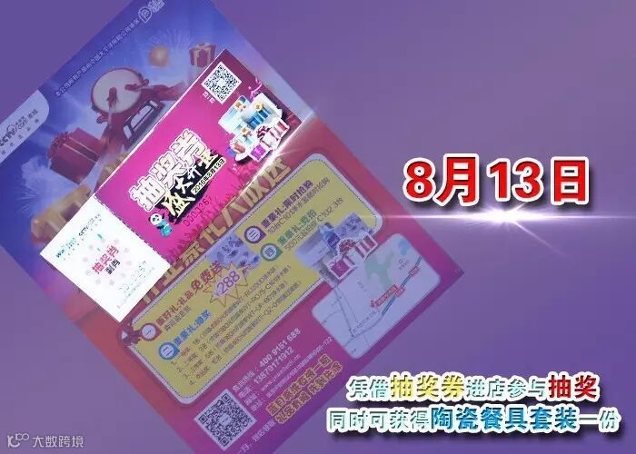 8月13日(明天)凭借抽奖券进店参与抽奖,同时可获得陶瓷餐具套装一份;