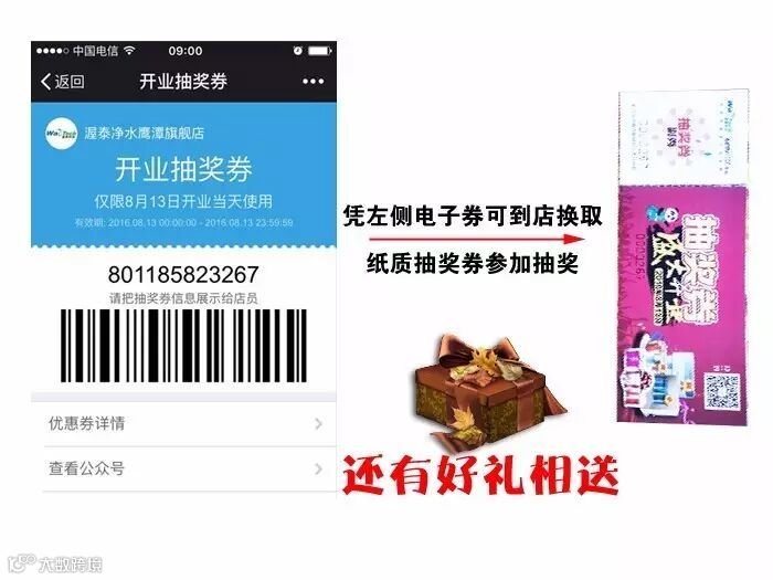 进店把电子抽奖券号出示给店员以换取纸质抽奖券一张,便于8月13日参加抽奖。同样,也可获赠礼品哦~