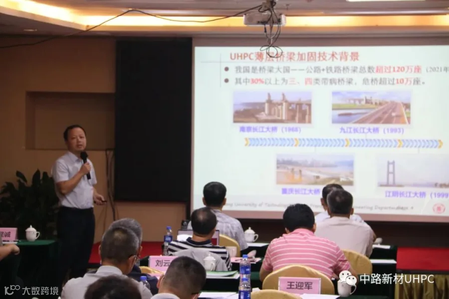 广东工业大学道桥与交通运输系副主任贺绍华作了“基于 UHPC 薄层的既有桥梁加固关键技术”的报告,从 UHPC加固技术在桥梁领域的应用现状、加固设计规范、UHPC-NC界面黏结力学性能等方面对 UHPC 加固技术作了介绍。
