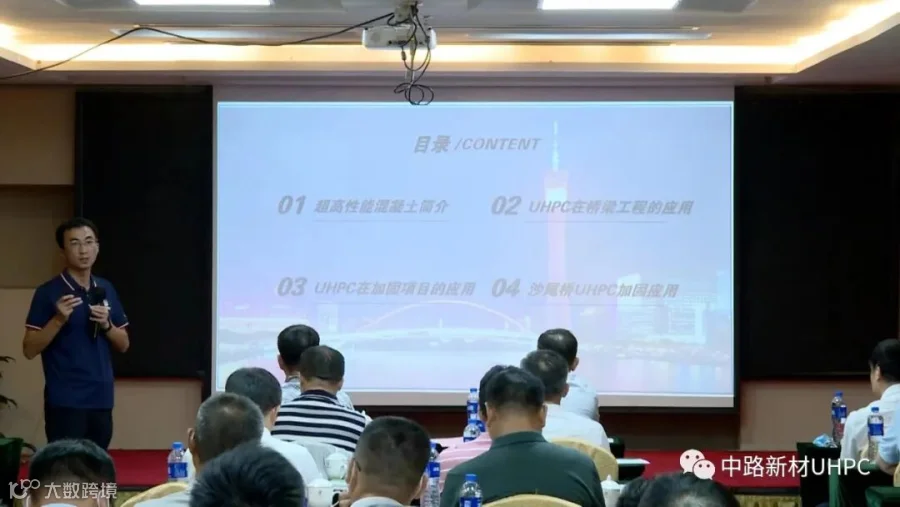 中路杜拉国际工程股份有限公司总工程师田月强作了题为“肇庆市高要区 Y013 线沙尾桥超高性能混凝土加固应用介绍”的报告,对 UHPC 加固技术在沙尾桥的应用进行了介绍。与会代表对部分设计施工创新技术进行了讨论和互动。