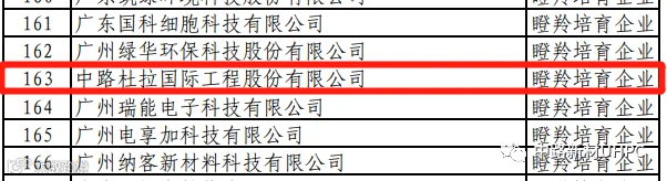 喜报:8月,广州市黄埔区科学技术局完成了对2022年度黄埔区、广州开发区瞪羚企业(含瞪羚培育企业)的认定工作,确定中路杜拉国际工程股份有限公司为2022年度瞪羚培育企业。