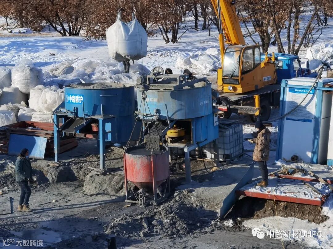 12月的黑龙江省,全境白雪皑皑,天寒地冻。在黑龙江某施工现场,机器轰鸣,中路新材集团旗下的广东中路防护科技有限公司作业团队正紧张有序地进行UHPC浇筑施工。