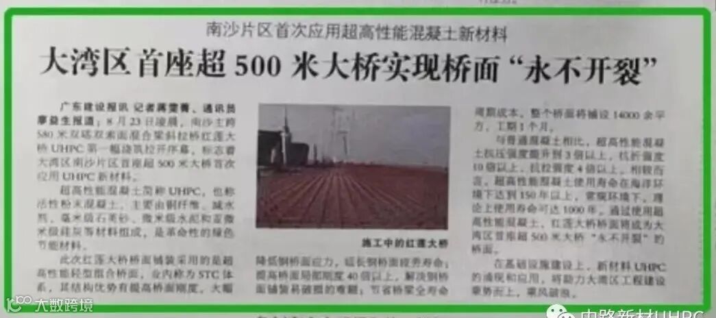 同时,《人民日报》《新华网》中央媒体和《广东省建设报》相继报道了红莲大桥采用新材料超高性能混凝土UHPC的相关技术,UHPC的应用将对工程领域建设带来全新变革。