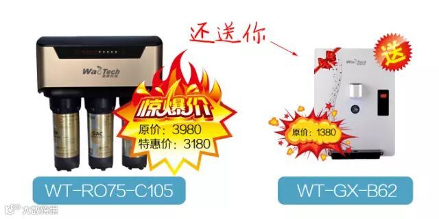 C105纯水机(原价3980元)特惠价3180元,另赠送B62管线机一台(原价1380元);