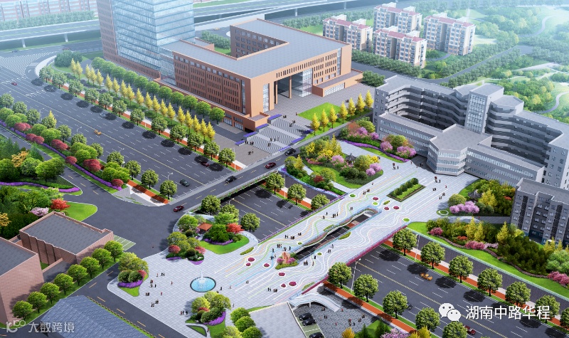 湖南工商大学跨桐梓坡路过街天桥定位为湖南工商大学南北两校区内部人行通道,该桥位中线处于湖南工商大学南北向中轴线,桥梁全长59m,跨径为50m,一跨跨越桐梓坡路,桥梁宽度32m,采用简支钢混砼叠合梁形式,桥面板采用UHPC超高性能砼。新结构、新材料不仅突出创新,同时降低结构高度,提升桥下通行舒适感。桥面整体呈敞开式中心广场布局,通透性好,视野开阔。桥梁中央设置6m宽采光景观区,既保障桥下通行采光,也能呈现层次丰富的景观效果。