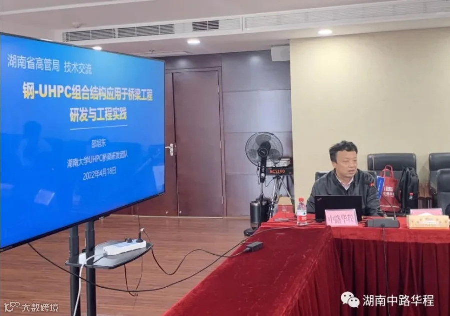 2022年4月18日,湖南长沙,为了深入实施国家“三高四新”战略,全面推进湖南省高速公路建设高质量发展,着力打造具有核心竞争力的科技创新,湖南省高速公路集团特邀湖南大学邵旭东教授、广东省交通规划勘察设计院孙向东副总工、中路新材(广州)科技股份有限公司田月强总工等相关专家,顺利召开了“UHPC新型桥梁结构研发及工程应用技术交流”会议。湖南省高速公路集团有限公司总工程师周栋梁、首席专家陈国平、相关部门及在建项目公司代表参与会议。中路新材(广州)科技股份有限公司董事长毛志坚(线上)、湖南中路华程桥梁科技股份公司总经理吴新印、中路创能(广州)设备材料有限公司总经理汤毅等出席本次会议。