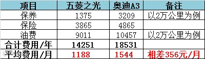 所以!!!奥迪A3一个月的费用只比五菱之光多了356元!