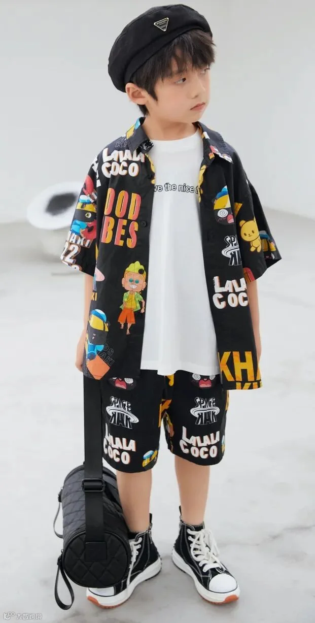 卡通图案铺满黑色衣服