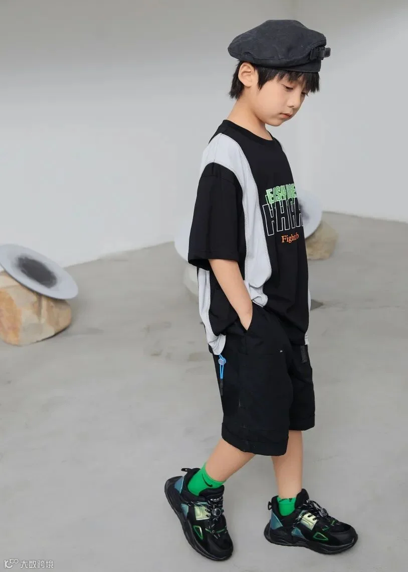 衣服上点缀绿色的字母