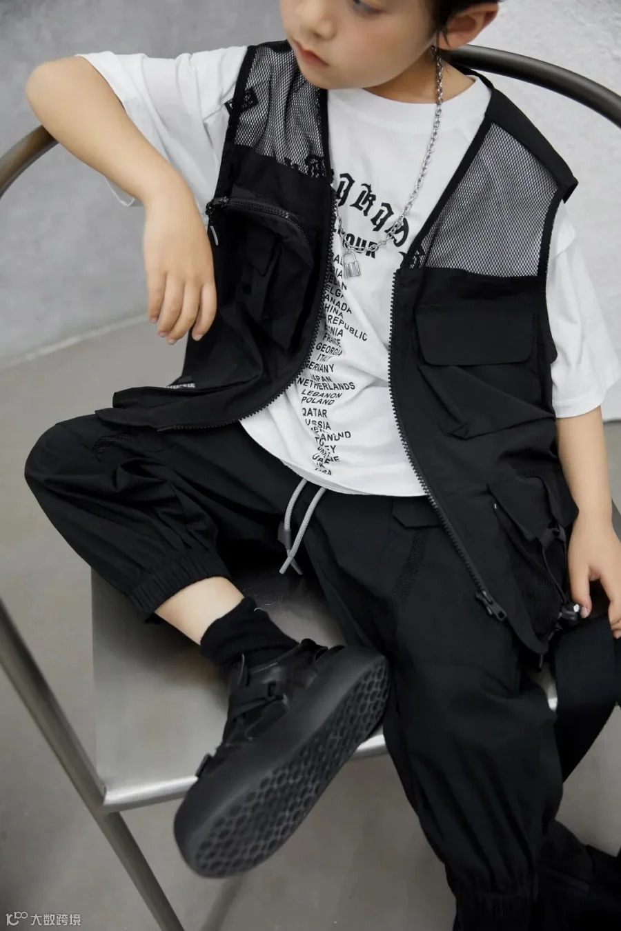 链条领带点亮整套黑白look