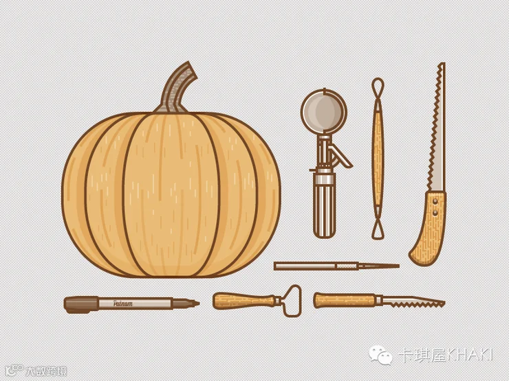 传说,万圣节前夜,人们为了防止游魂进屋,纷纷在屋子前挂上表情可怕的南瓜灯。但是南瓜灯不一定等于恐怖,只要有创意,你可以亲手做一个千奇百怪的南瓜灯。HAPPY HALLOWEEN,KHAKI卡琪屋教你做个南瓜灯: